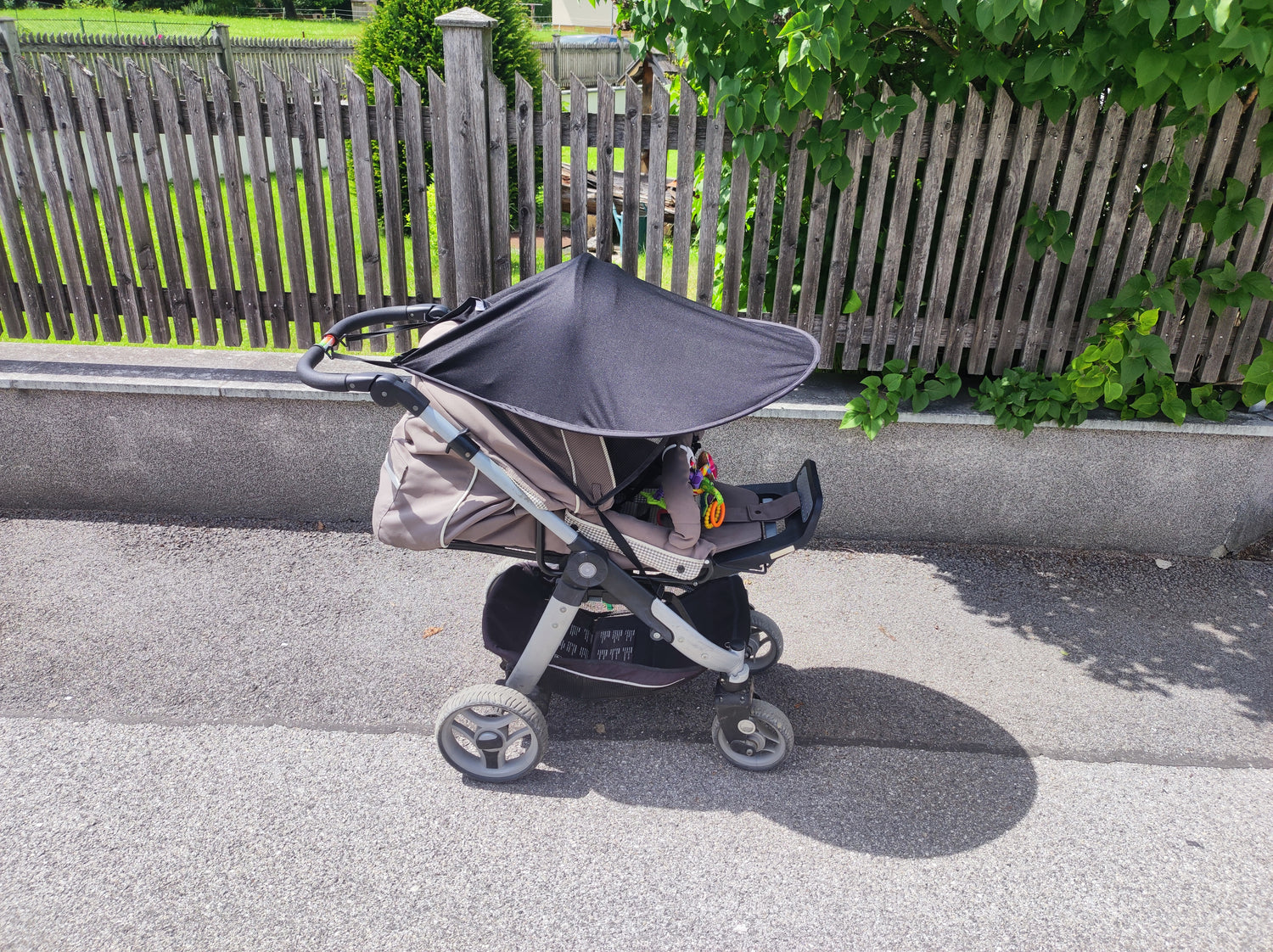 Endlich ein Sonnendach, das auch vorwärtsgerichtet passt. Unsere Kleine wird nicht mehr von der Sonne geblendet, wenn wir draußen sind.