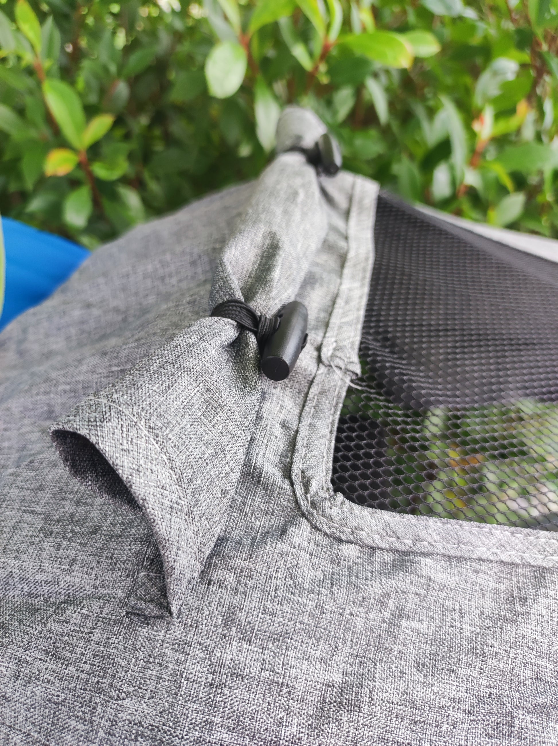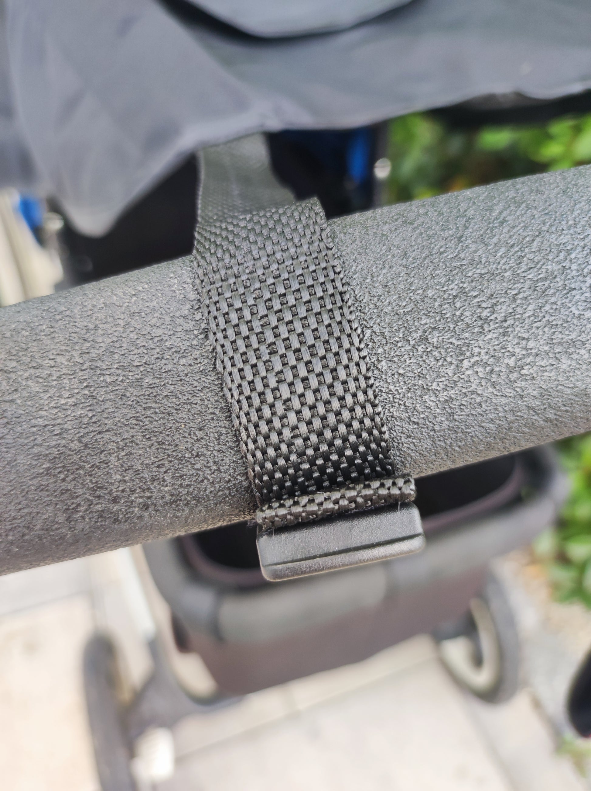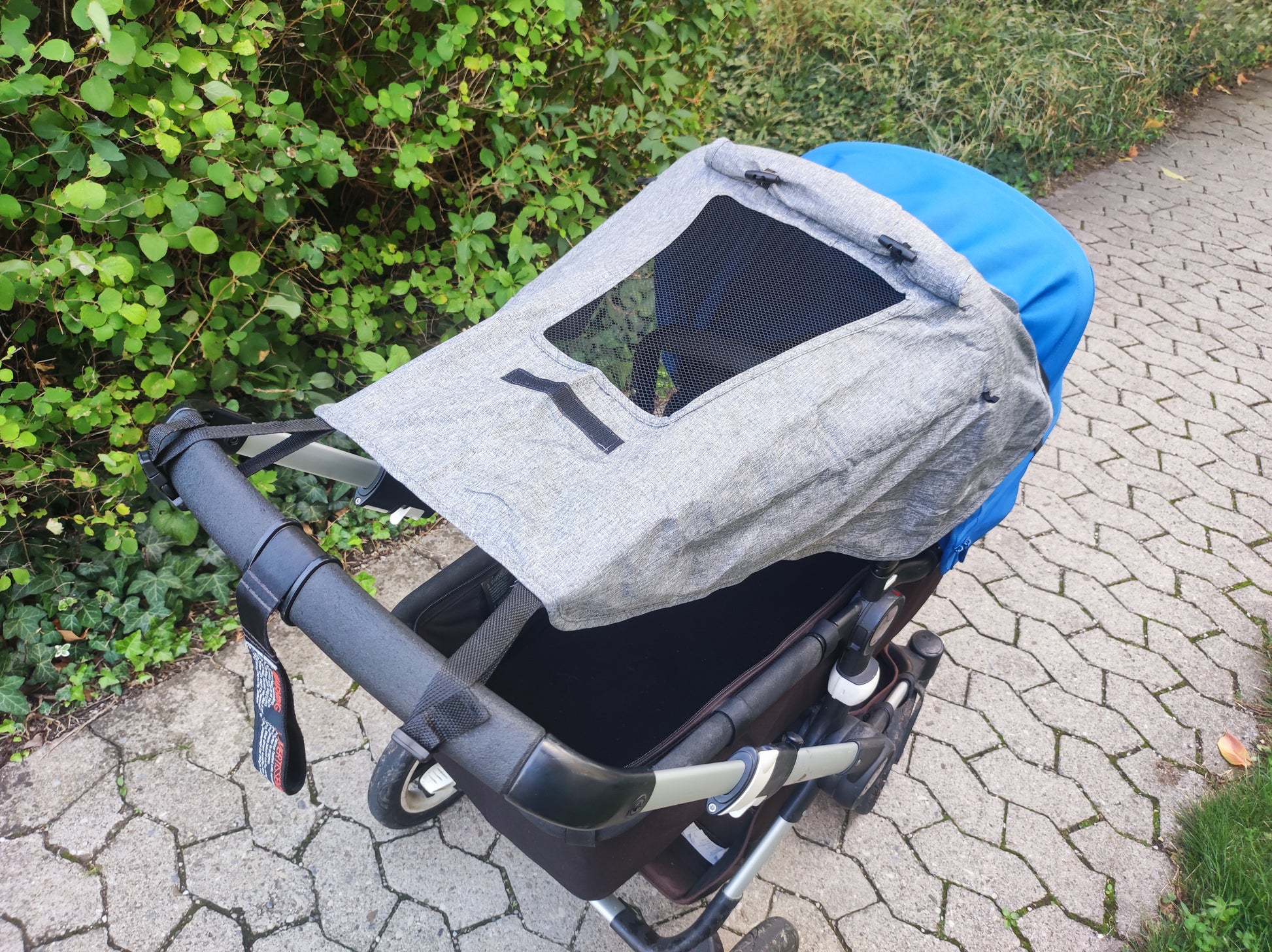 Einfache Befestigung: Wird zwischen dem Verdeck und dem Schiebegriff gespannt – in Sekunden angebracht.